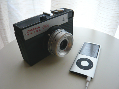 ひとつは、以前から存在が気になっていたSMENA 8M。 まだまだ勉強不足なので多くは語らない。 とある朝、やたらと早く目が覚めてMIXIをチェックしたところ、 このカメラのコミュにて「お譲りします」と出ていたのを発見した。 早速メッセージを送り、結果、お手ごろな価格でお譲りいただいた。 「早起きってステキ」。本気でそう思った。 made in USSRとの印字が、これまたニクイ。 もうひとつは、さぁ、敗者と認めよう、りんごのマークのアイツだ。 デジカメだけでは持ちきれない 過去の写真も持ち歩きたいと最近富みに思い、 また、geniusの機能に魅せられ、 ついに手を出した。 この子たちで当分遊べる。 次に欲しいのは 線が黒いイヤホンと、 カメラのために改造するかっこいいギターストラップ。 | |