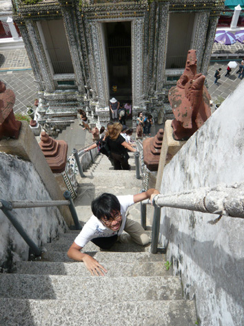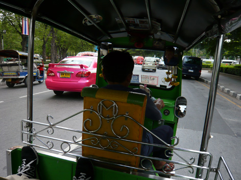 内容の深度も違いますし、なにより長くなるので、別にしました。 さて、Wat Arun と Wat Phoを訪れたその後・・・ 寺めぐりのその後しばらく歩いてNational Museumへ。 門の付近で博物館のヒトと思われるヒトに呼び止められました。 なかなかちゃんと英語を話すじゃないですか、すごいね。 大抵のタイ人の英語って、なまりが強くて聞き取りづらい。 んまー、6年以上英語を勉強している日本人よりも これだけ話せれば、すばらしいことですけどもね。 聞くに、明日はセレモニーがあって今館内は清掃中。 15時くらいにならないと開かないんだよ、と。 あらー、タイミング悪いわー。 そこで会話が弾む。 日本からきたよ、とか、学生?とか、タイ人にみえるね、とか Wat Arunと Wat Phoを見てきたよ、とか。 そしたら、次はココとココとココに行くといい。 そういって、うちらが図書館で借りてきた「地球の歩き方」に書き込みました。 トゥクトゥクに乗っていくといい、50bahtくらいだよ。 それ以上は高いからね、高いって言うんだよ。と、タイ語まで教えてくれた。 3軒目はシルクのお店ね、ここは1年に7日間しか開けてないんだよ。 あとはぜーんぶ輸出用。モノがいいからね。んで今日は7日間の最終日! あんたたち、ラッキーだよ、ぜひいくべきだよ。 そーお?親切にありがとう、じゃーね。 てくてく。すると、通りすがりのヒトに声をかけられました。 おんなじようなことを勧めてくれました。 代表的観光地なのかな?んじゃー、まぁ・・・ 歩いていくの?それは遠くていけないよ。トゥクトゥクがいいよ。 ほら、とめてあげるよ。 え?いや、いいよいいよ・・・。 振り払い気味に歩き出すと、一台のトゥクトゥク。 乗る?乗っていくかい?○○と○○いくの? う、いくらで行く?ときいてみると50だという。 うーん、まぁ、じゃぁ、乗ってみるか。初トゥクトゥク♪ そして2件の仏めぐり。2件目でお参りしている青年に出会う。 そんなところにいちゃだめだよ、ほら、こっちにきて、手を合わせて…。 と、仏教徒であるその青年に促され、拝んでみる。 黒い仏像。館内は入れないらしい。 どこからきたの?どこをみたの? ここでも会話が弾む。なまりは強いけど、ちゃんと英語。 ココとココと…と、地図を開いて示す。 その後、「ここ!何で知ってるの?」と一箇所を指差した。 1人目の博物館のおじさんが書き込んだ、シルクのお店。 ここはね、最高のタイシルクの店でね、通常は輸出用で…云々。 ・・・?あれ、おなじこときいたぞ。有名なところなのか? でもダンナはとうとう怪しみだした。話途中で、行こう、と。 トゥクトゥクに戻る。 このあとはバックパッカーの集まる カオサン通りへ連れて行ってもらう予定が・・ 一枚のラミネートされた紙。 わたしたちはお客様を○○へ連れて行くことで ガソリン1リットルをもらえます。 1分でも構いません、ぜひ。 そんな主旨の内容が書かれた、かなりカタコトな日本語。 やられた!そうやって客を連れて行って買わせるのか! なんとも美しすぎる連携プレー!! その寺からカオサンまでは足が無く、仕方なくトゥクトゥクにのる。 行くけど、本当に1分だけだからね!! 途中でスコール、あぁ、最悪だ。 店の前に付くと、店員が傘をさして出てくる。 フツーの、っつーか、この店が 世界中に輸出しているシルクを扱うようには見えん! 傘を差され、仕方なく店内に入ると、 きっと同じように連れてこられたであろうヒトが店内にまばらにいた。 入口から足を進めることなく、店内を見渡し、 「コレはイタリアのものでして…」と説明を始めようとする店員に それ以上説明を続けさせること無く、店を出た。 外ではトゥクトゥクドライバーのおじさんが、 さっきまでとは違い、明らかに不機嫌に待っていた。 本当に1分で出てきたからな。 んで、約束通り、カオサン通りに。 50bahtを支払い、トゥクトゥクをおりた。 ダンナは最初のヒトリ目で見抜けなかったことに いたくショックだった様子で、 麻美はというと、すっかりだまされ、 それとは別に、きっと町中でナイス連係プレーが 繰り広げられているんだろうなぁと思うと関心仕切りだった。 この手口はベタは観光地周辺では頻繁に行われているようです。 気をつけてください。 | |