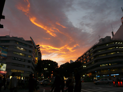 なんといってもこんなきれいなお空が見えることよ。 暑かったけど、チャリで来てよかった。 あんまりにもキレイだったから、 信号待ちのたびにカメラを取り出しちゃったよ。 まずは表参道でぱちり。 つづいて神宮前の信号待ちでも。 んでもって、富ヶ谷の交差点でも。 同じようにちゃりんこのあんちゃん、ケータイ取り出してぱしゃり。 ・・・おいおい、まみの画角にはいってくれるなよ。 んま、いーや、彼も含めて、ぱちり。 ん~、おなかいっぱい。 朝、ダンナが出張から帰ってきた。 あまりにも衝撃的だったため、 | |